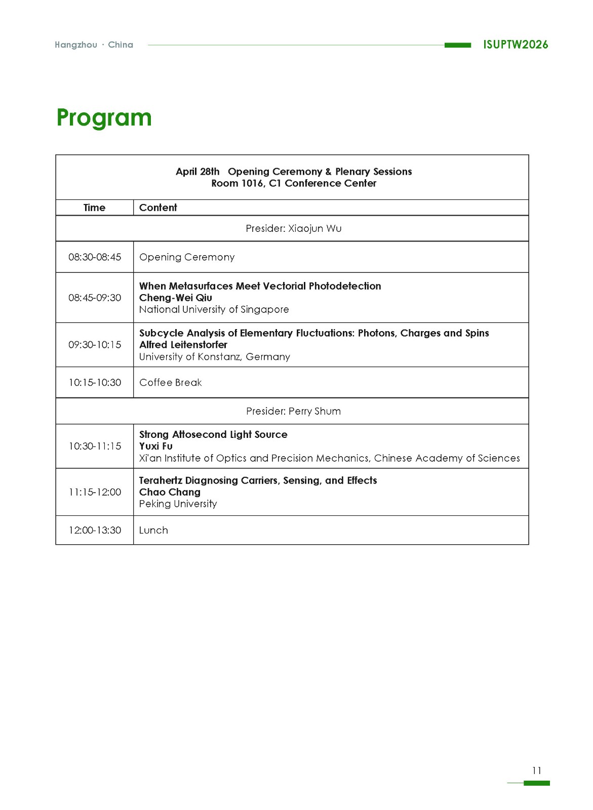 (有关邀请报告、口头报告及海报展示的详细信息,请参阅上方可供下载的完整版日程。)